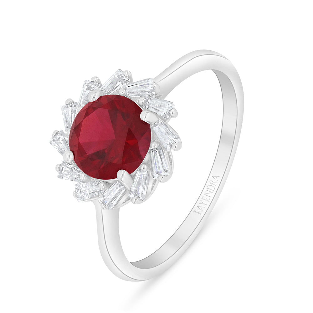 خاتم من الفضة الخالصة عيار 925 مطلي روديوم مرصع ياقوت كروندوم و فص ابيض