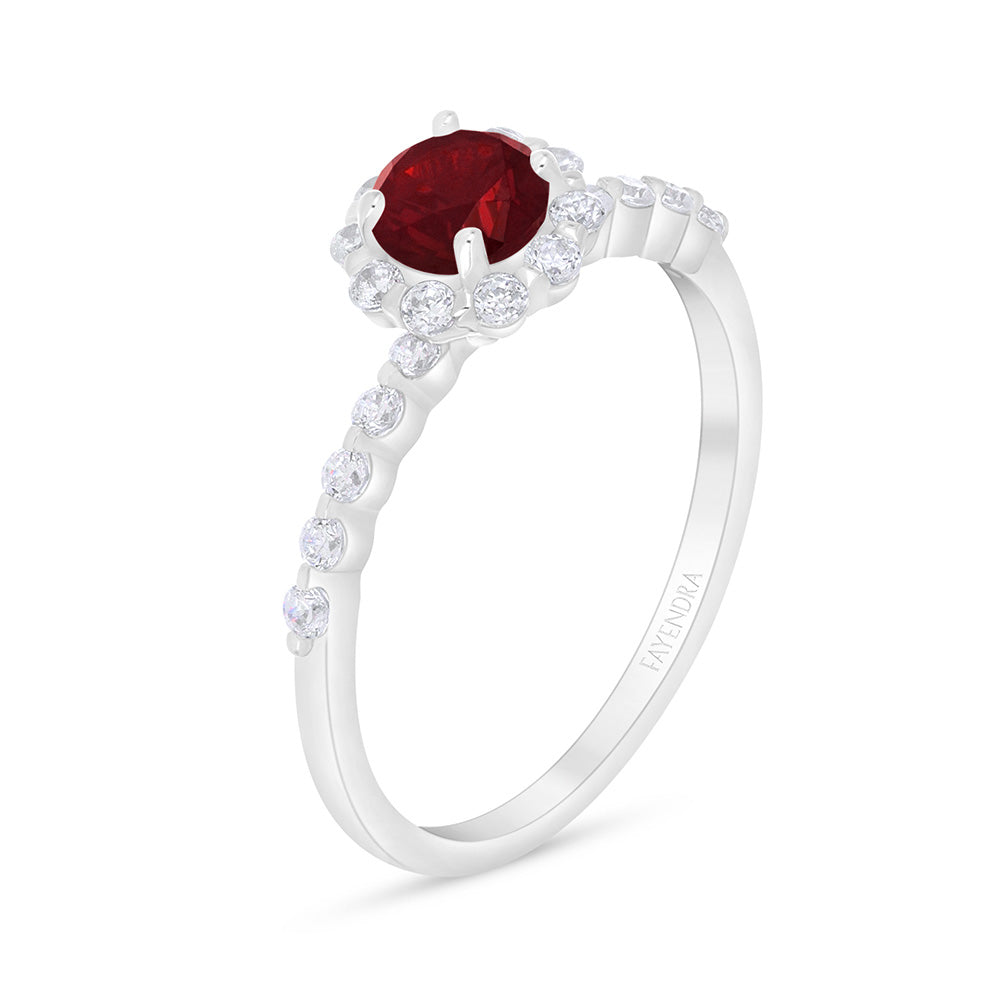 خاتم من الفضة الخالصة عيار 925 مطلي روديوم مرصع ياقوت كروندوم و فص ابيض