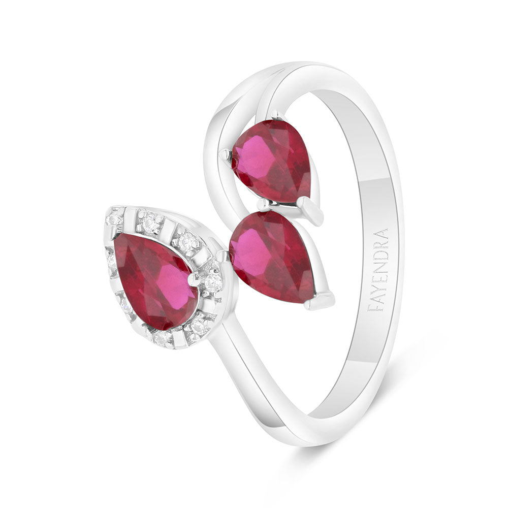 خاتم من الفضة الخالصة عيار 925 مطلي روديوم مرصع ياقوت كروندوم و فص ابيض