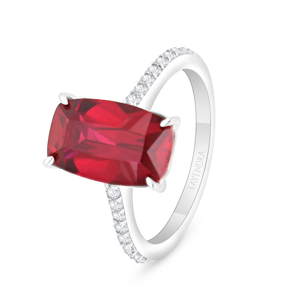 خاتم من الفضة الخالصة عيار 925 مطلي روديوم مرصع ياقوت كروندوم و فص ابيض