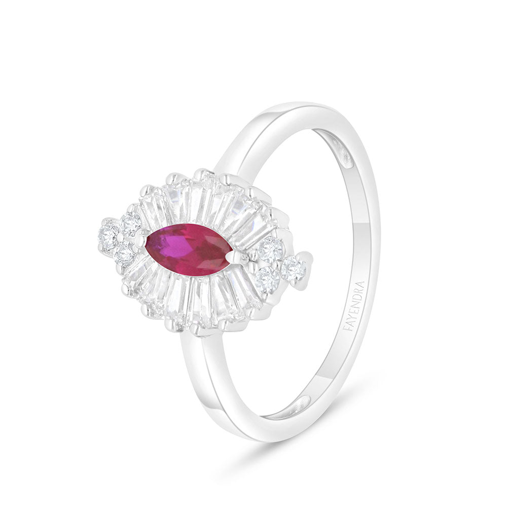 خاتم من الفضة الخالصة عيار 925 مطلي روديوم مرصع ياقوت كروندوم و فص ابيض