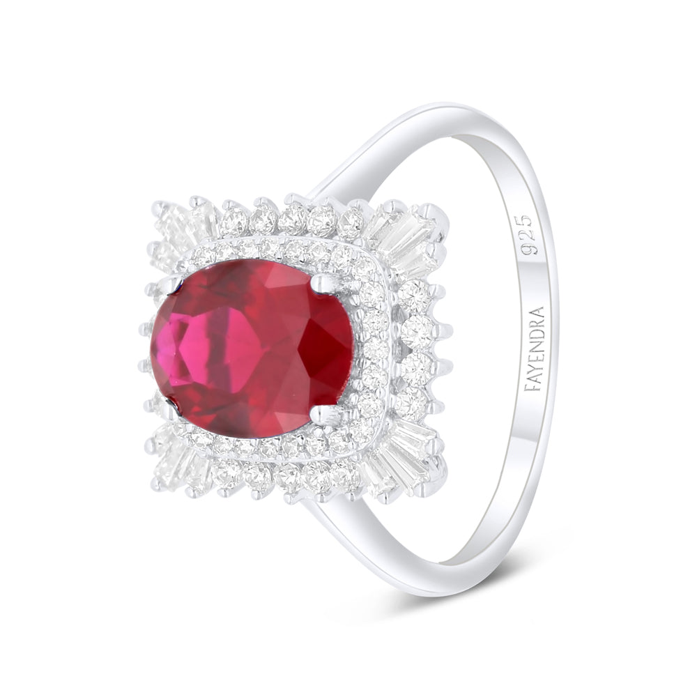 خاتم من الفضة الخالصة عيار 925 مطلي روديوم مرصع ياقوت كروندوم و فص ابيض