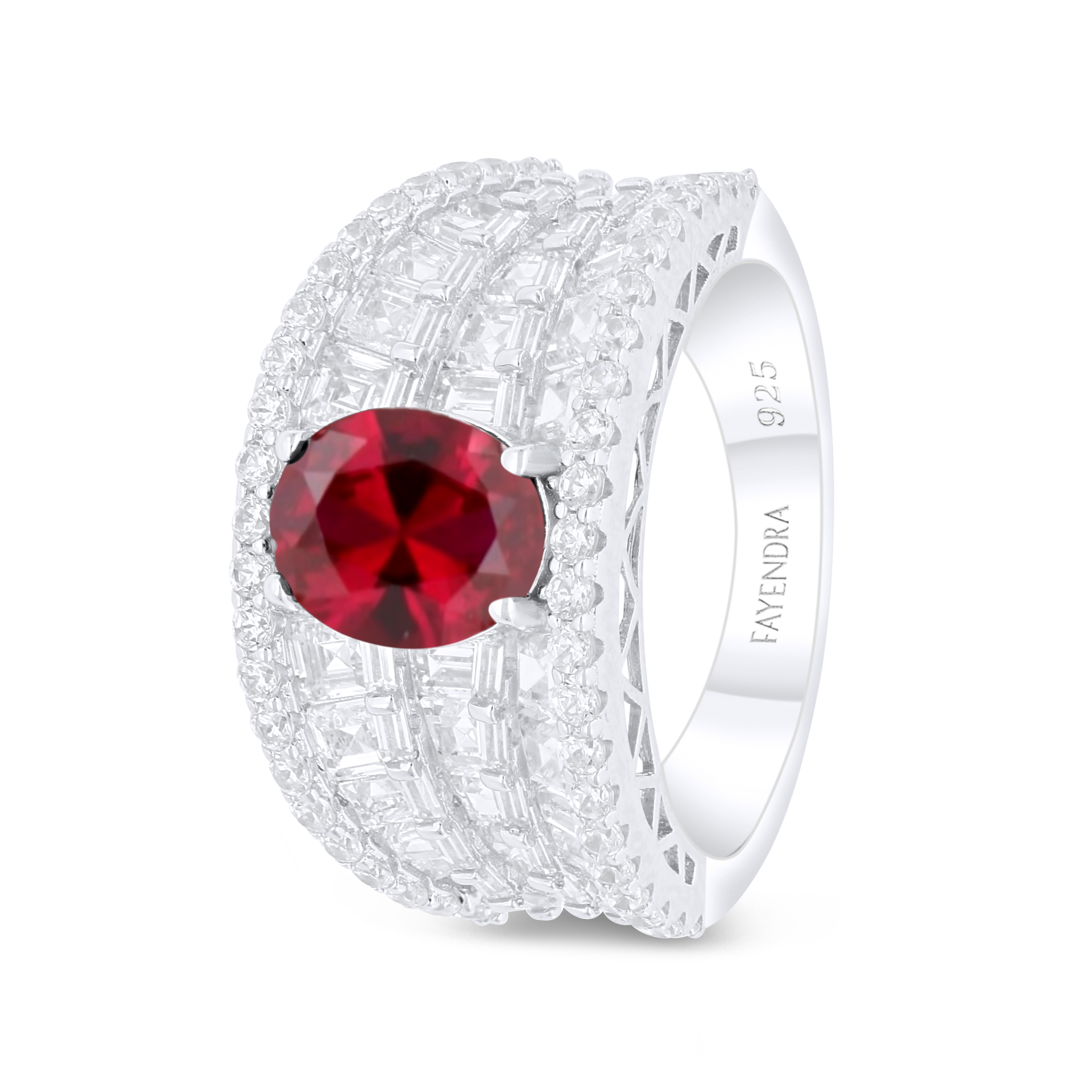 خاتم من الفضة الخالصة عيار 925 مطلي روديوم مرصع ياقوت كروندوم و فص ابيض