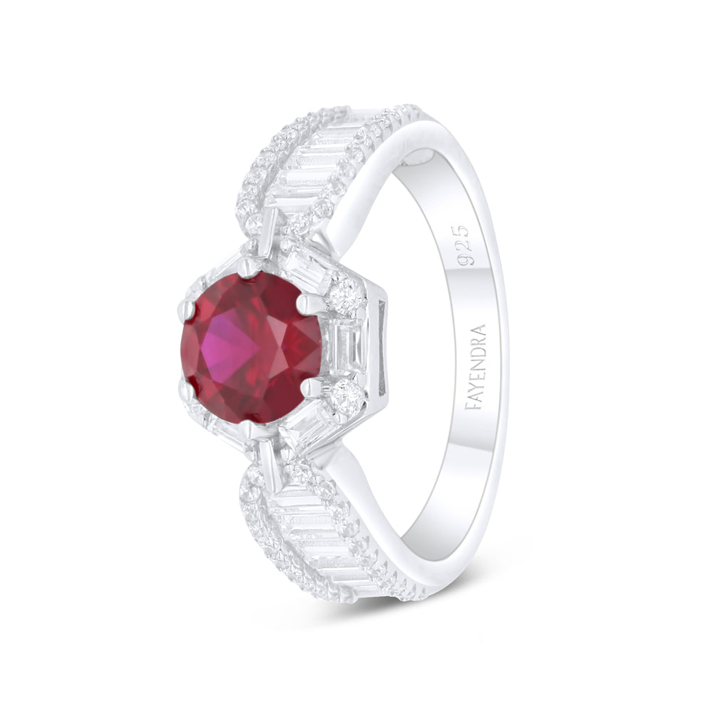خاتم من الفضة الخالصة عيار 925 مطلي روديوم مرصع ياقوت كروندوم و فص ابيض