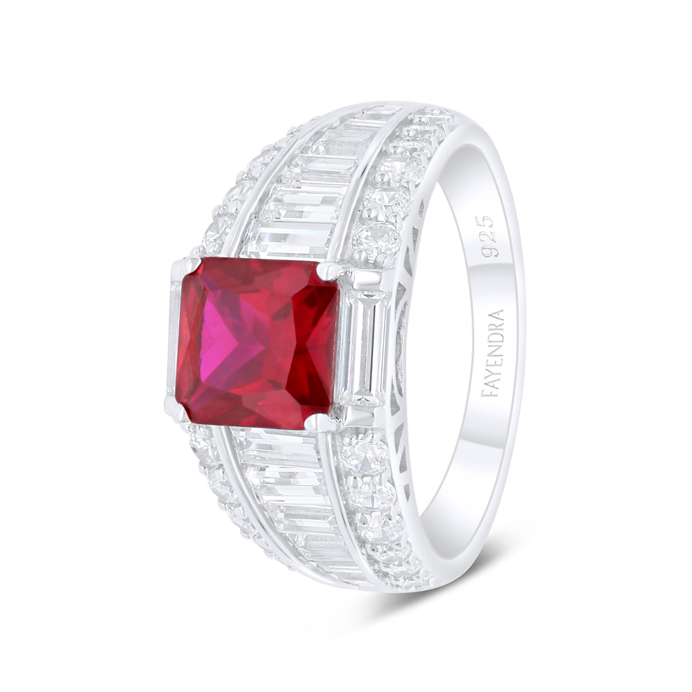 خاتم من الفضة الخالصة عيار 925 مطلي روديوم مرصع ياقوت كروندوم و فص ابيض