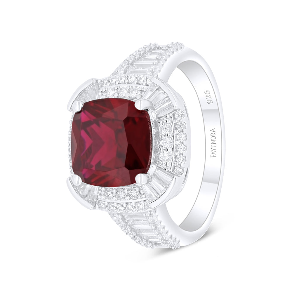 خاتم من الفضة الخالصة عيار 925 مطلي روديوم مرصع ياقوت كروندوم و فص ابيض