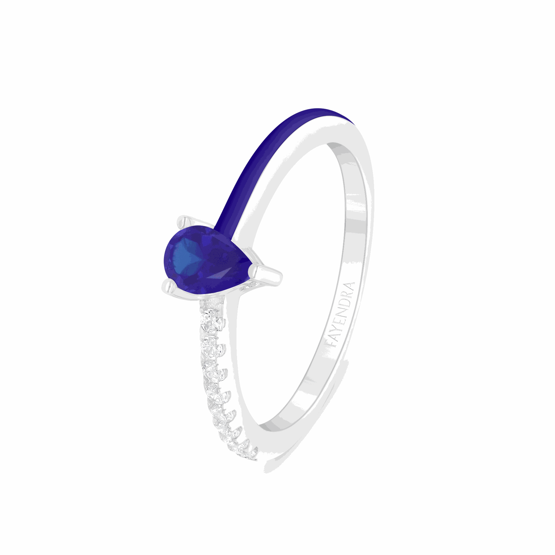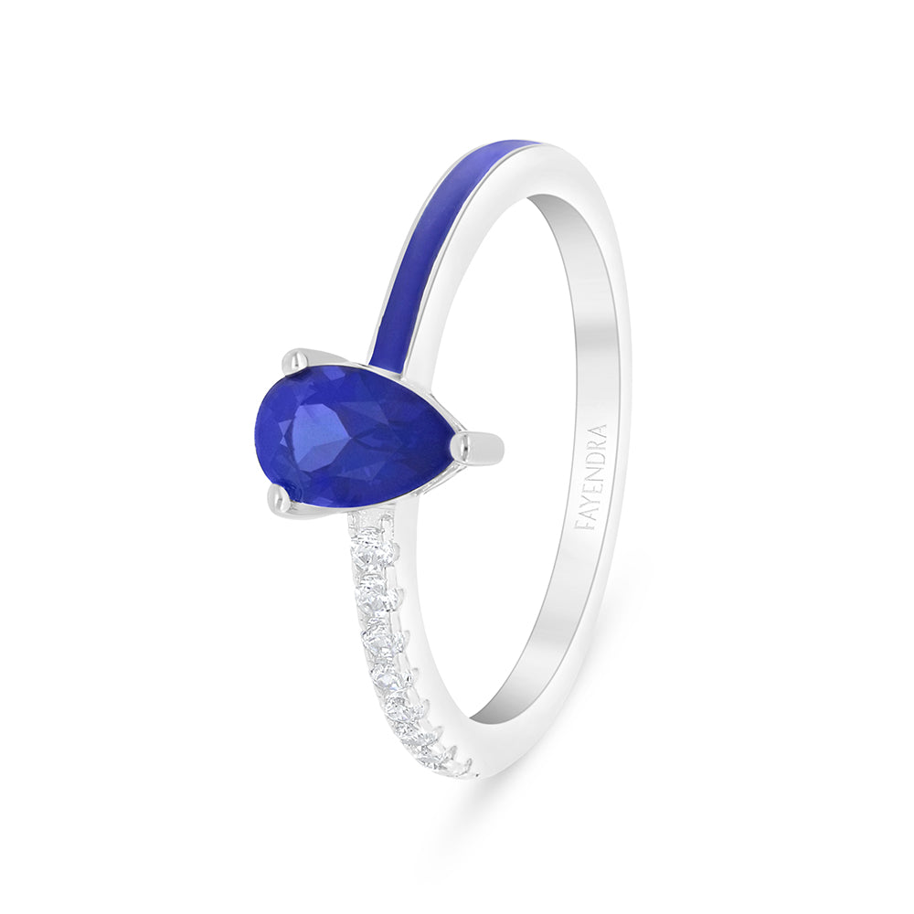خاتم من الفضة الخالصة عيار 925 مطلي روديوم مرصع زفير كروندوم و انميل ازرق و فص ابيض