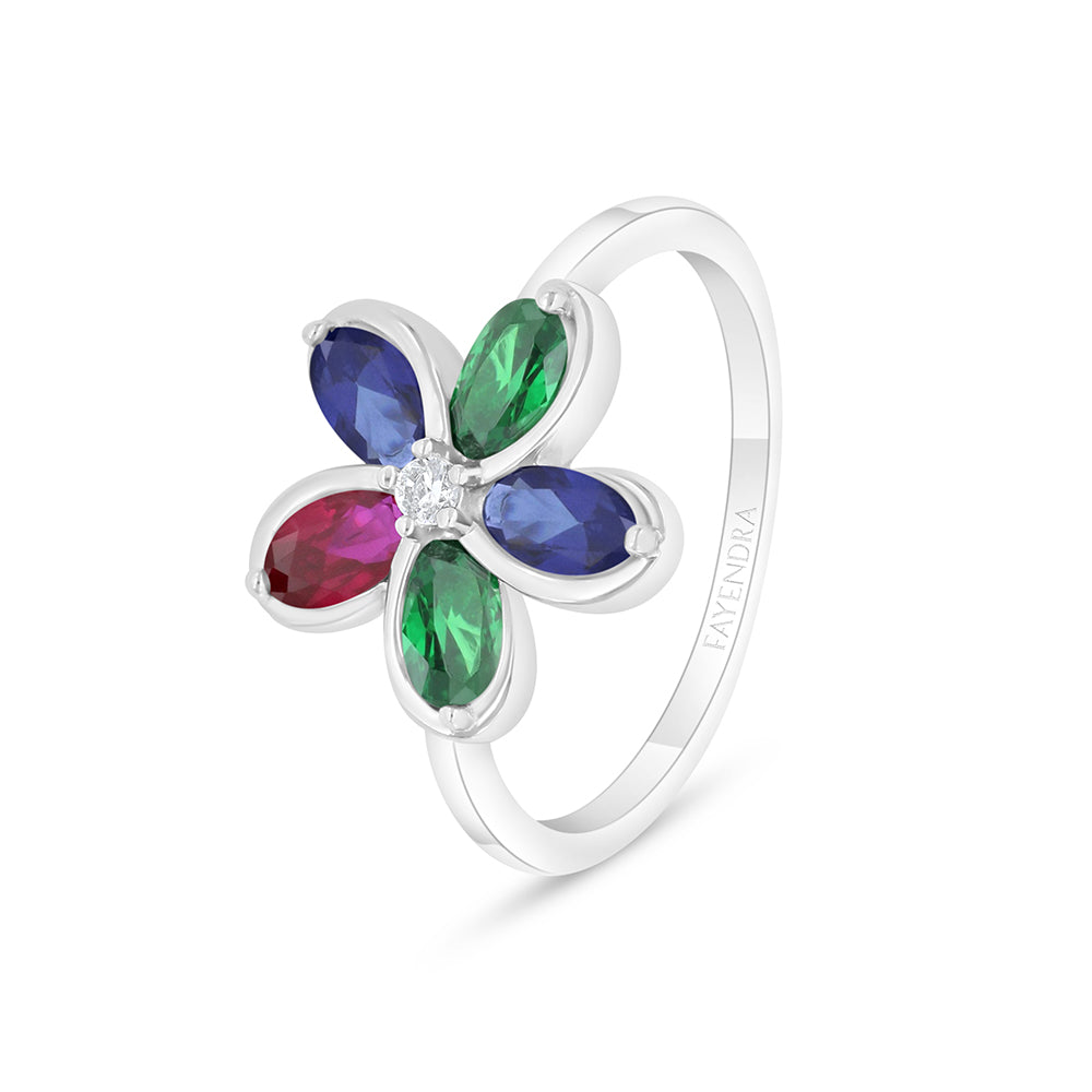 Total Weight: 2.8g رقة تنبع من الأعماق، وتصميم شاعري ينسجم بتناغم مع ذوقك الأنثوي الرفيع. يأتيكِ هذا الخاتم الفاخر مصاغًا من الفضة الخالصة عيار 925، ومطليًا بالروديوم ليمنحه لمعانًا فائقًا ولمسة حماية تدوم. يتألّق بتصميم أنيق على هيئة زهرة مجوّفة، تُزيّن بتلاتها تشكيلة من أحجار الياقوت والزفير كروندوم والزركون الزمردي والأبيض بلمعانها الآسر. في رقتها يكمن سحرها، وبحضورك تصبح الإطلالة خالدة في الأذهان. اقتني هذه القطعة المميزة الآن وأضيفي لمسة من الجمال الآسر إلى مجموعتك.