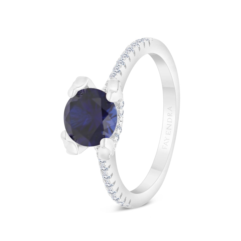 خاتم من الفضة الخالصة عيار 925 مطلي روديوم مرصع زفير كروندوم و فص ابيض