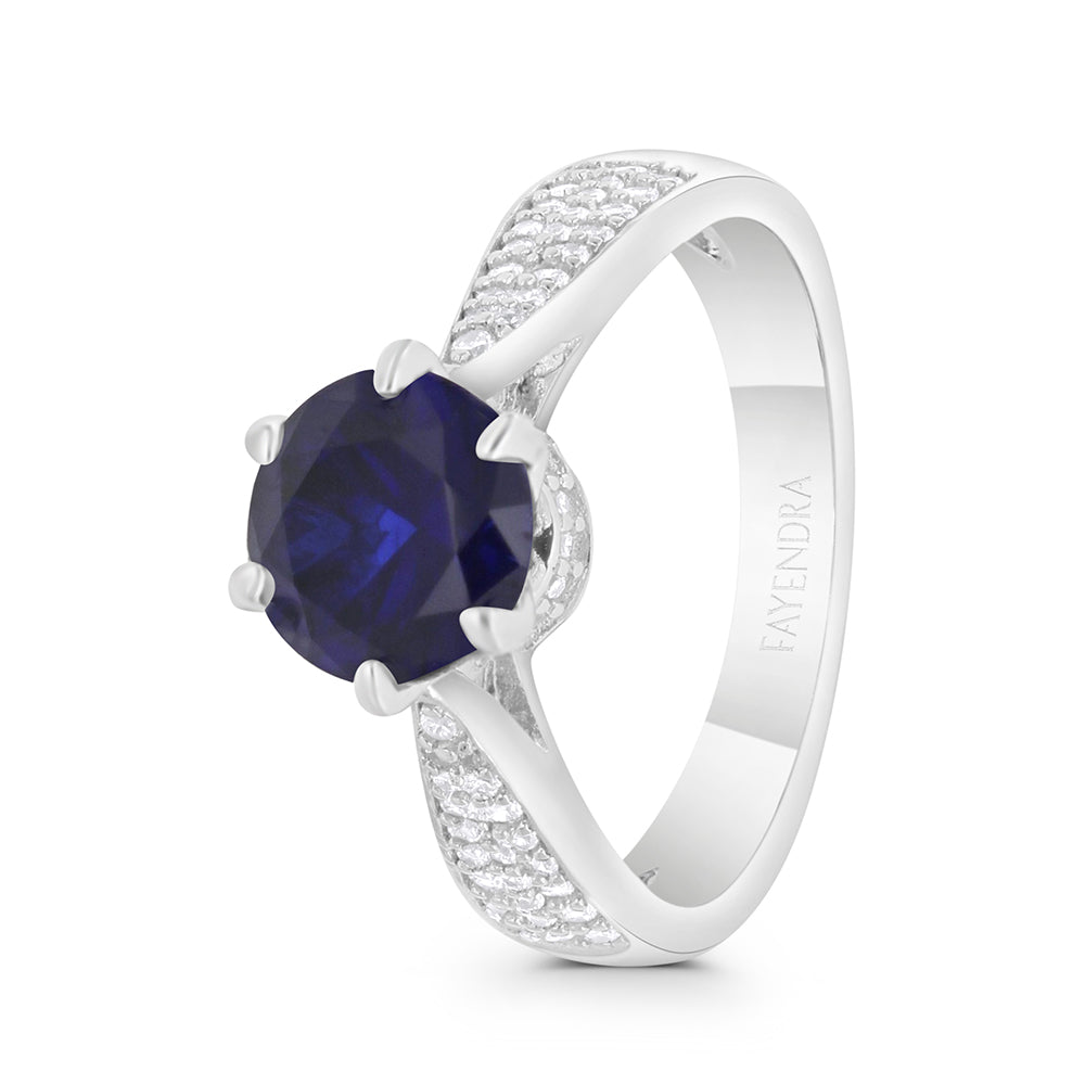 خاتم من الفضة الخالصة عيار 925 مطلي روديوم مرصع زفير كروندوم و فص ابيض