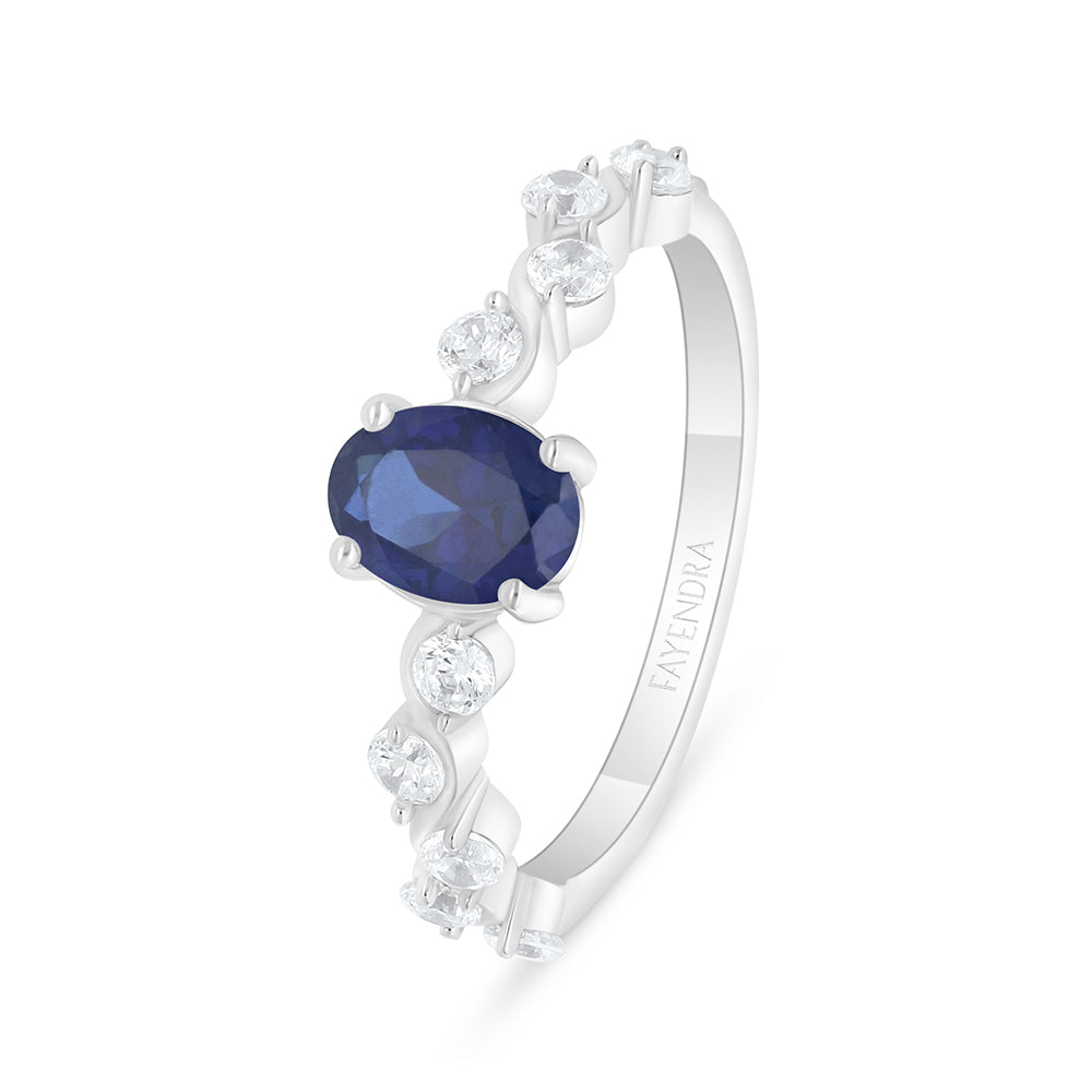 خاتم من الفضة الخالصة عيار 925 مطلي روديوم مرصع زفير كروندوم و فص ابيض