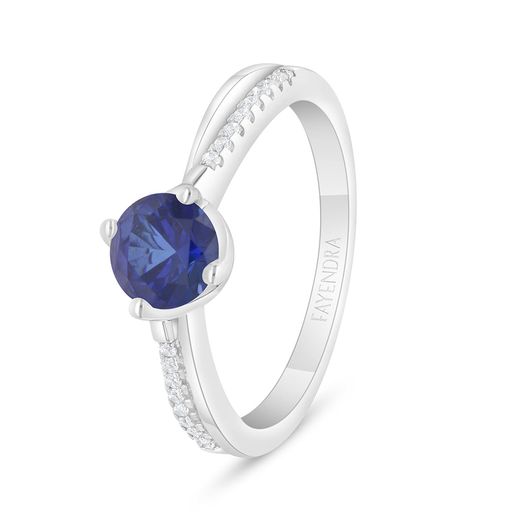 خاتم من الفضة الخالصة عيار 925 مطلي روديوم مرصع زفير كروندوم و فص ابيض