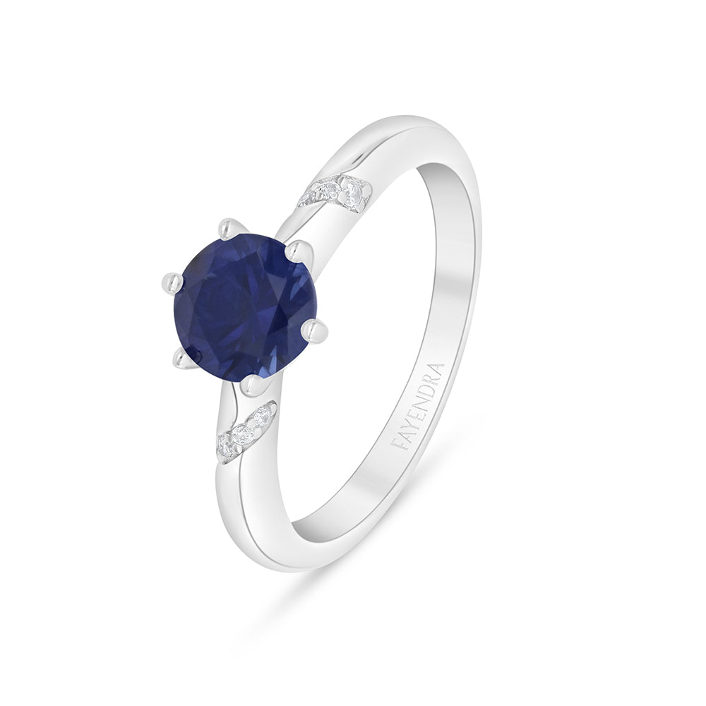 خاتم من الفضة الخالصة عيار 925 مطلي روديوم مرصع زفير كروندوم و فص ابيض