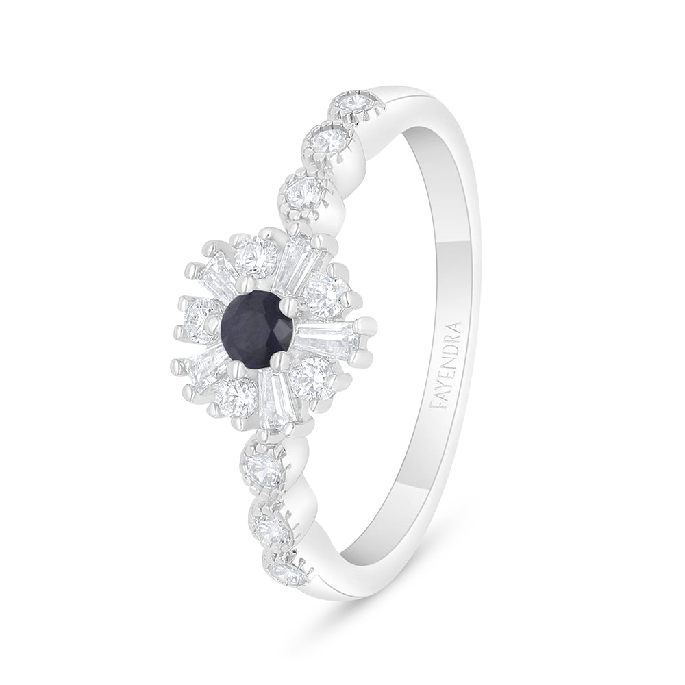 خاتم من الفضة الخالصة عيار 925 مطلي روديوم مرصع زفير كروندوم و فص ابيض