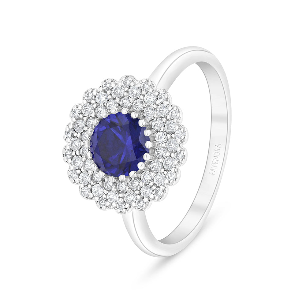 خاتم من الفضة الخالصة عيار 925 مطلي روديوم مرصع زفير كروندوم و فص ابيض