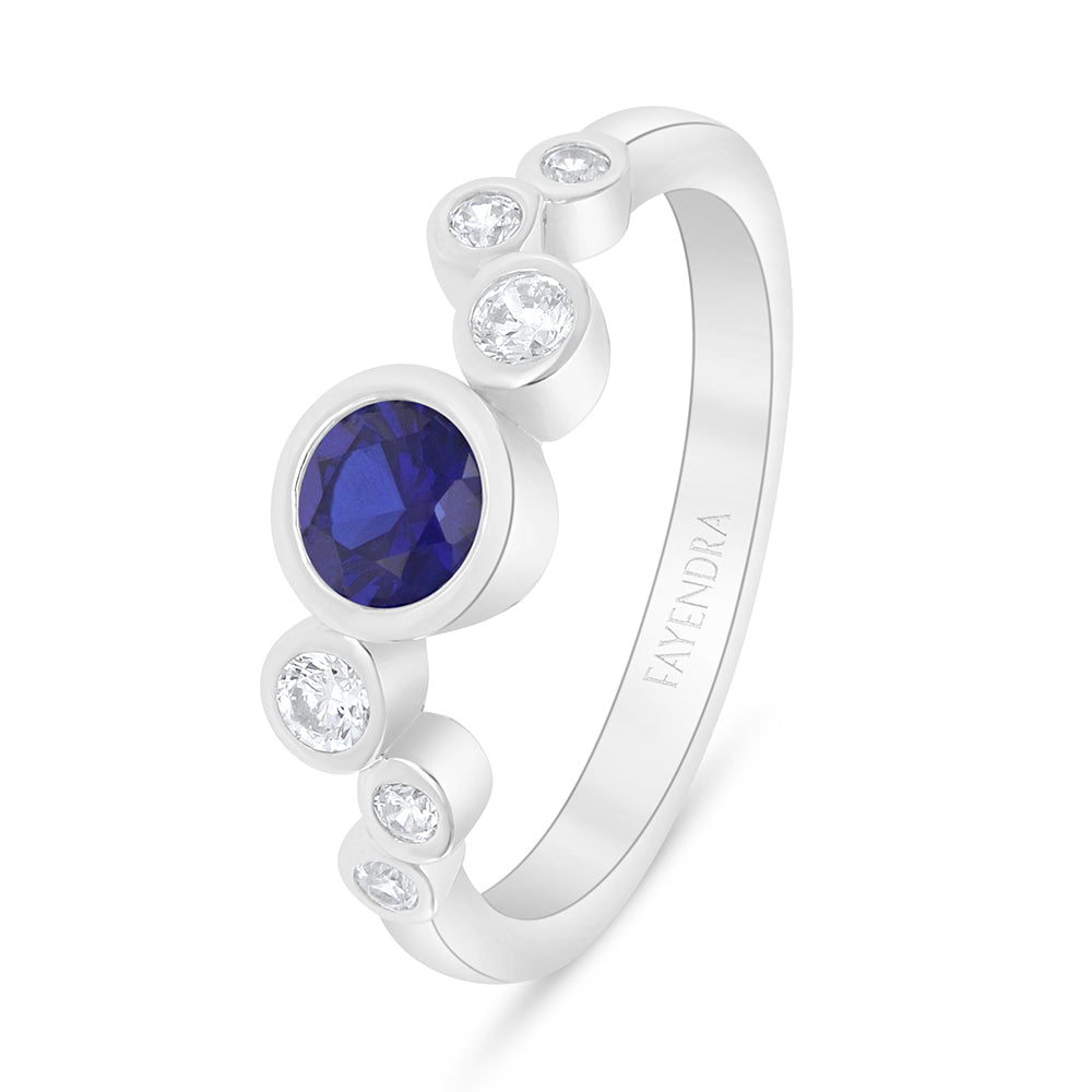 خاتم من الفضة الخالصة عيار 925 مطلي روديوم مرصع زفير كروندوم و فص ابيض