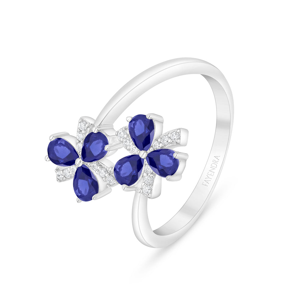 خاتم من الفضة الخالصة عيار 925 مطلي روديوم مرصع زفير كروندوم و فص ابيض