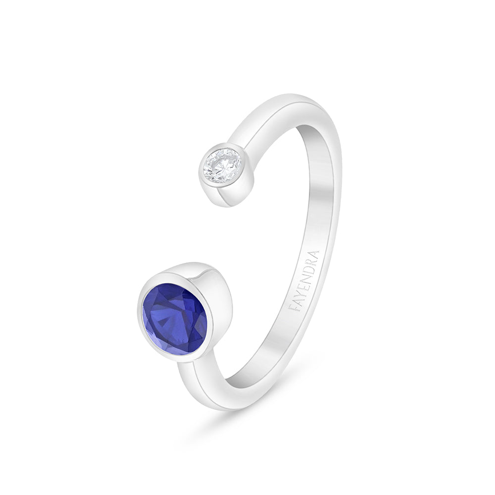خاتم من الفضة الخالصة عيار 925 مطلي روديوم مرصع زفير كروندوم و فص ابيض