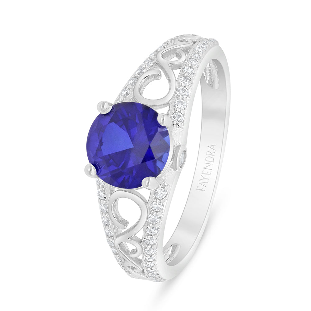 خاتم من الفضة الخالصة عيار 925 مطلي روديوم مرصع زفير كروندوم و فص ابيض