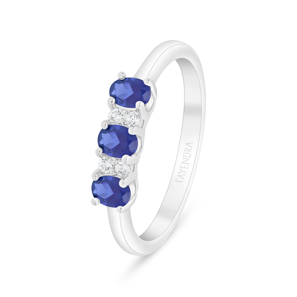 خاتم من الفضة الخالصة عيار 925 مطلي روديوم مرصع زفير كروندوم و فص ابيض