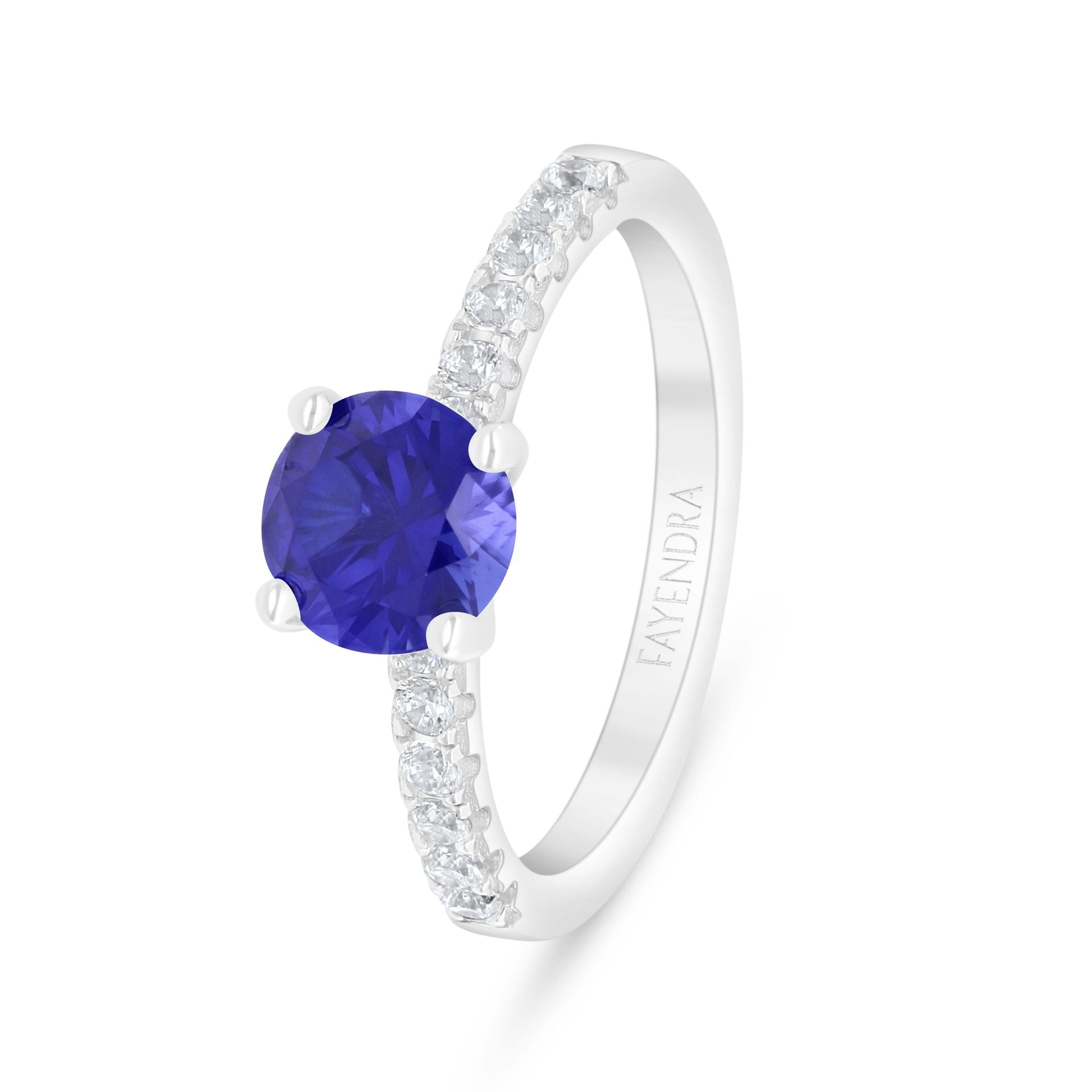 خاتم من الفضة الخالصة عيار 925 مطلي روديوم مرصع زفير كروندوم و فص ابيض