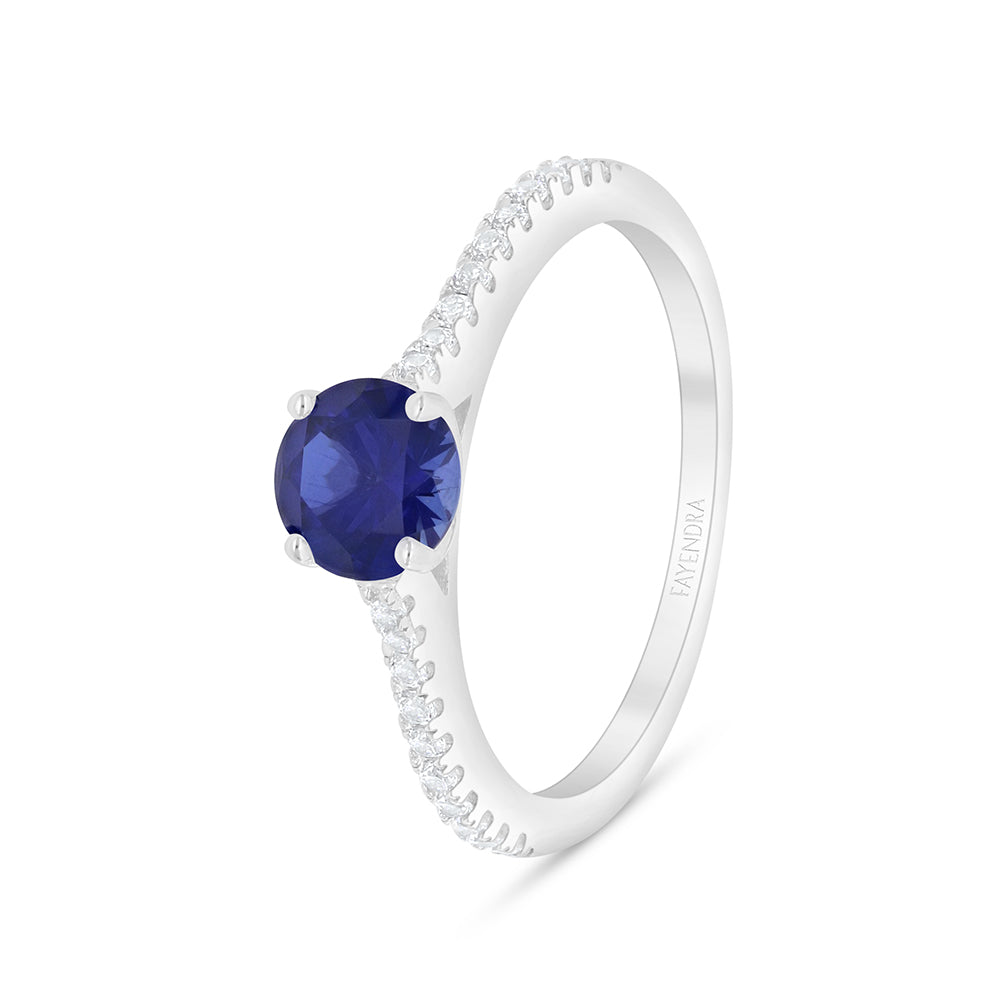 خاتم من الفضة الخالصة عيار 925 مطلي روديوم مرصع زفير كروندوم و فص ابيض
