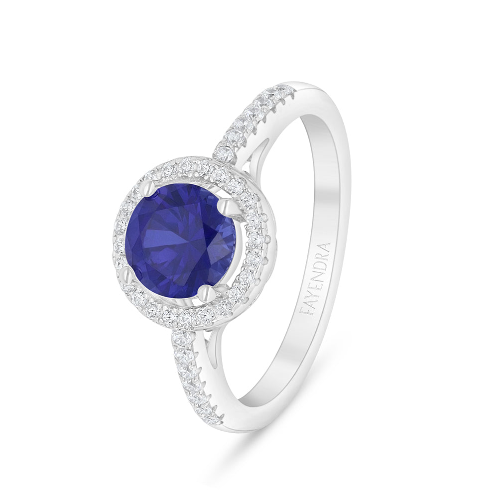 خاتم من الفضة الخالصة عيار 925 مطلي روديوم مرصع زفير كروندوم و فص ابيض