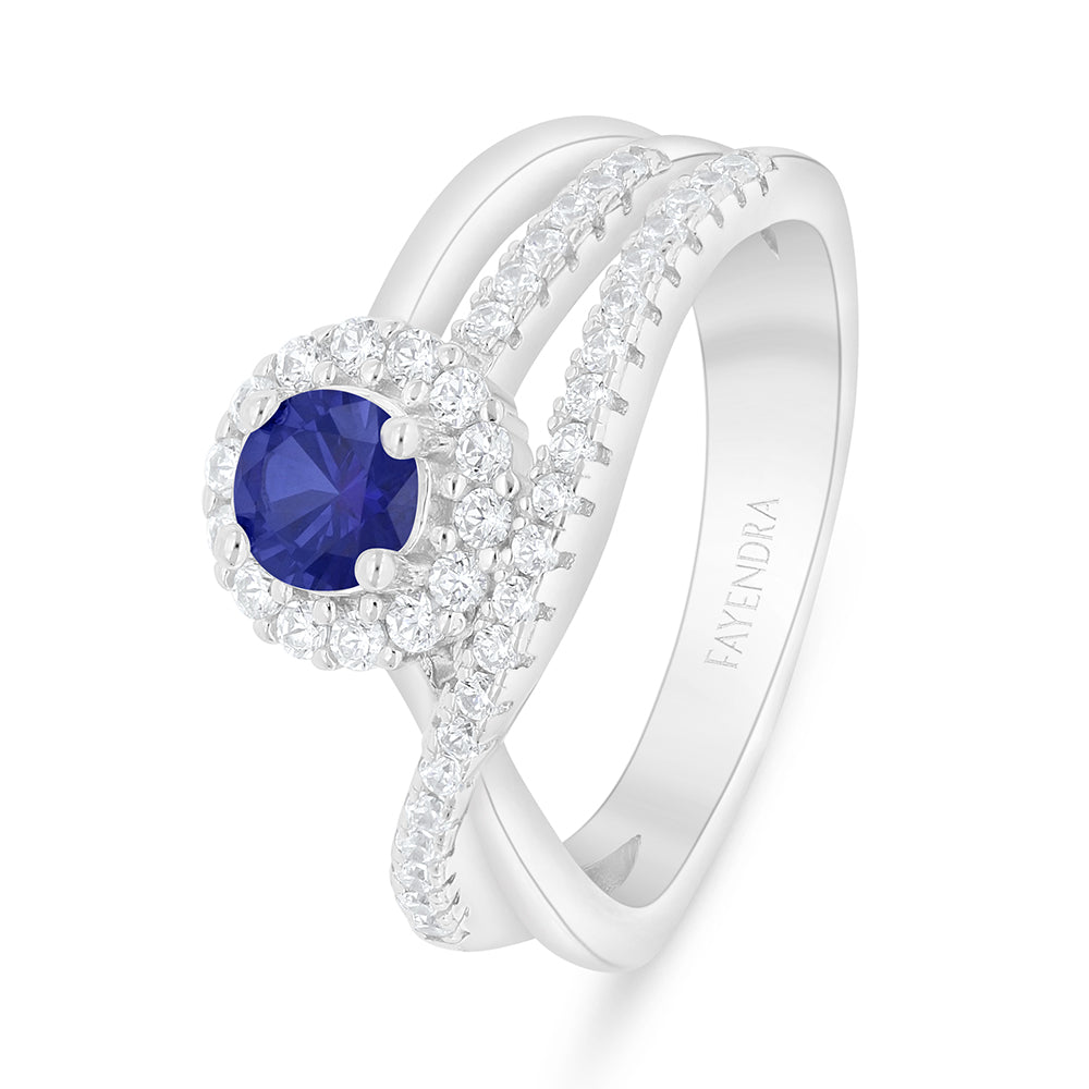 خاتم من الفضة الخالصة عيار 925 مطلي روديوم مرصع زفير كروندوم و فص ابيض
