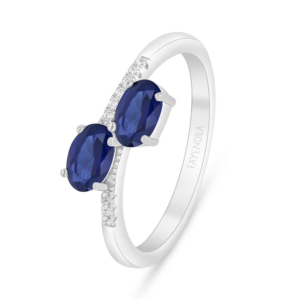 خاتم من الفضة الخالصة عيار 925 مطلي روديوم مرصع زفير كروندوم و فص ابيض