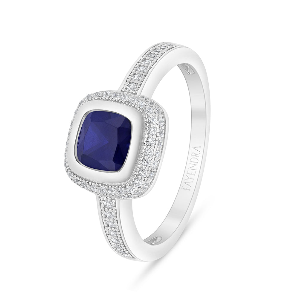 خاتم من الفضة الخالصة عيار 925 مطلي روديوم مرصع زفير كروندوم و فص ابيض