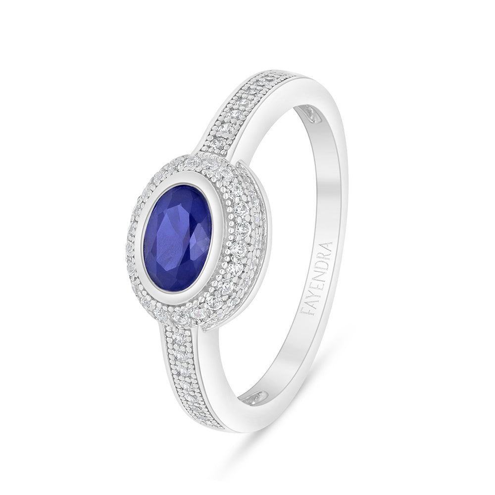 خاتم من الفضة الخالصة عيار 925 مطلي روديوم مرصع زفير كروندوم و فص ابيض
