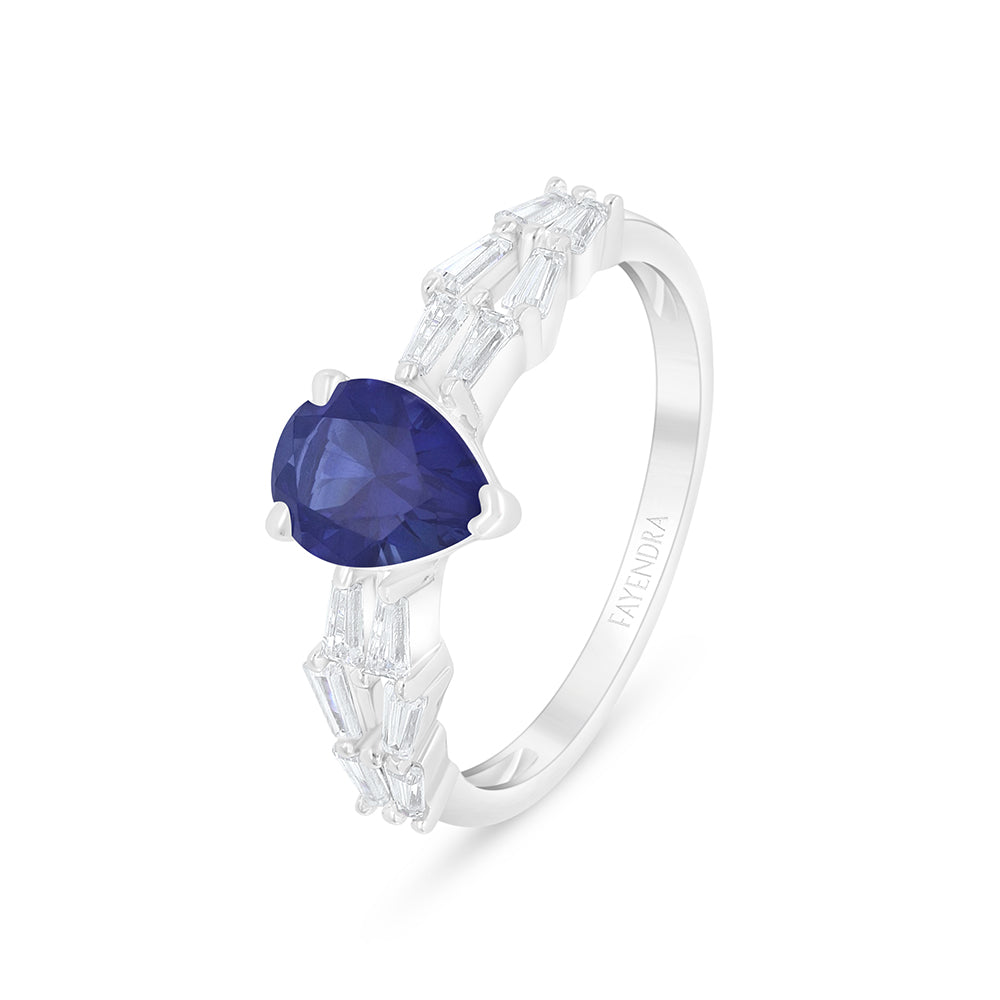 خاتم من الفضة الخالصة عيار 925 مطلي روديوم مرصع زفير كروندوم و فص ابيض