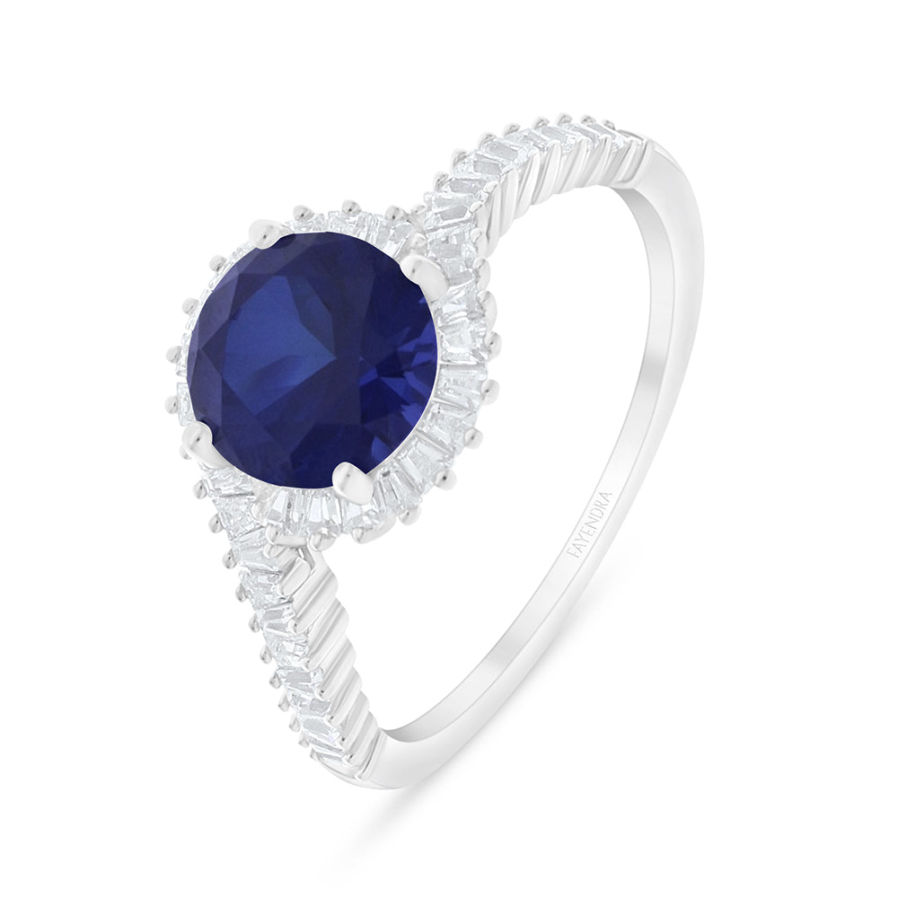 خاتم من الفضة الخالصة عيار 925 مطلي روديوم مرصع زفير كروندوم و فص ابيض