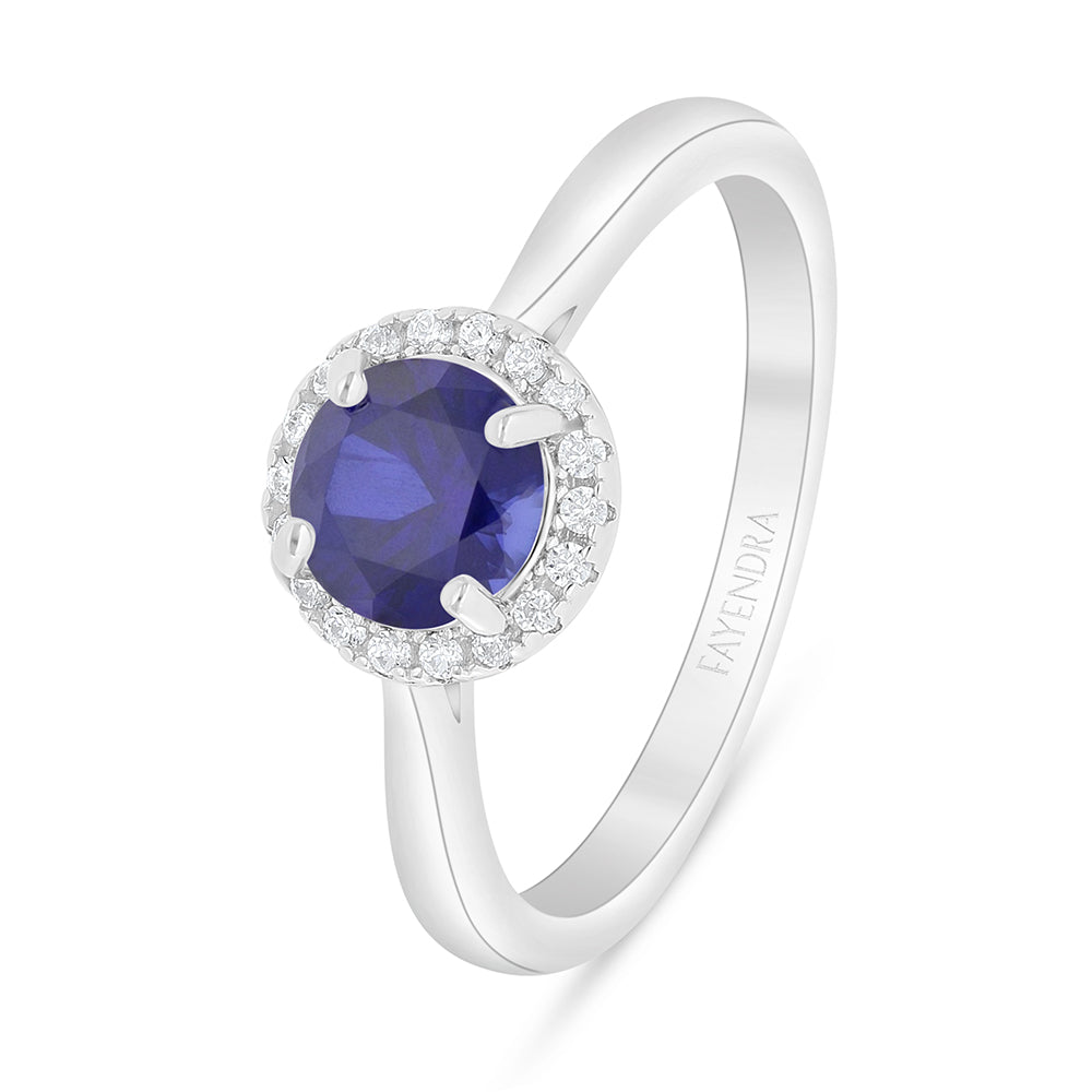 خاتم من الفضة الخالصة عيار 925 مطلي روديوم مرصع زفير كروندوم و فص ابيض