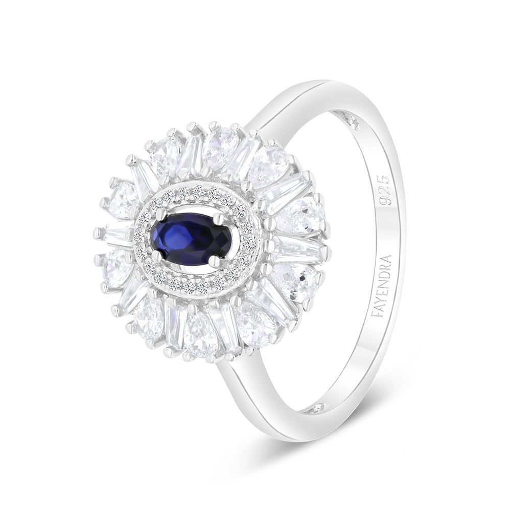 خاتم من الفضة الخالصة عيار 925 مطلي روديوم مرصع زفير كروندوم و فص ابيض