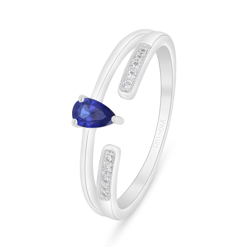 خاتم من الفضة الخالصة عيار 925 مطلي روديوم مرصع زفير كروندوم و فص ابيض
