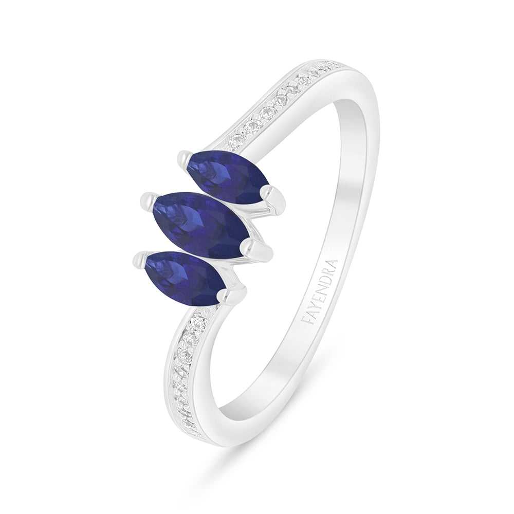 خاتم من الفضة الخالصة عيار 925 مطلي روديوم مرصع زفير كروندوم و فص ابيض
