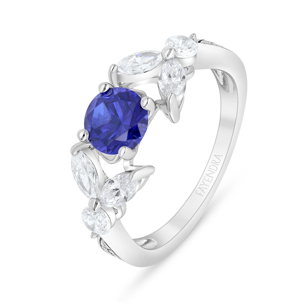 خاتم من الفضة الخالصة عيار 925 مطلي روديوم مرصع زفير كروندوم و فص ابيض
