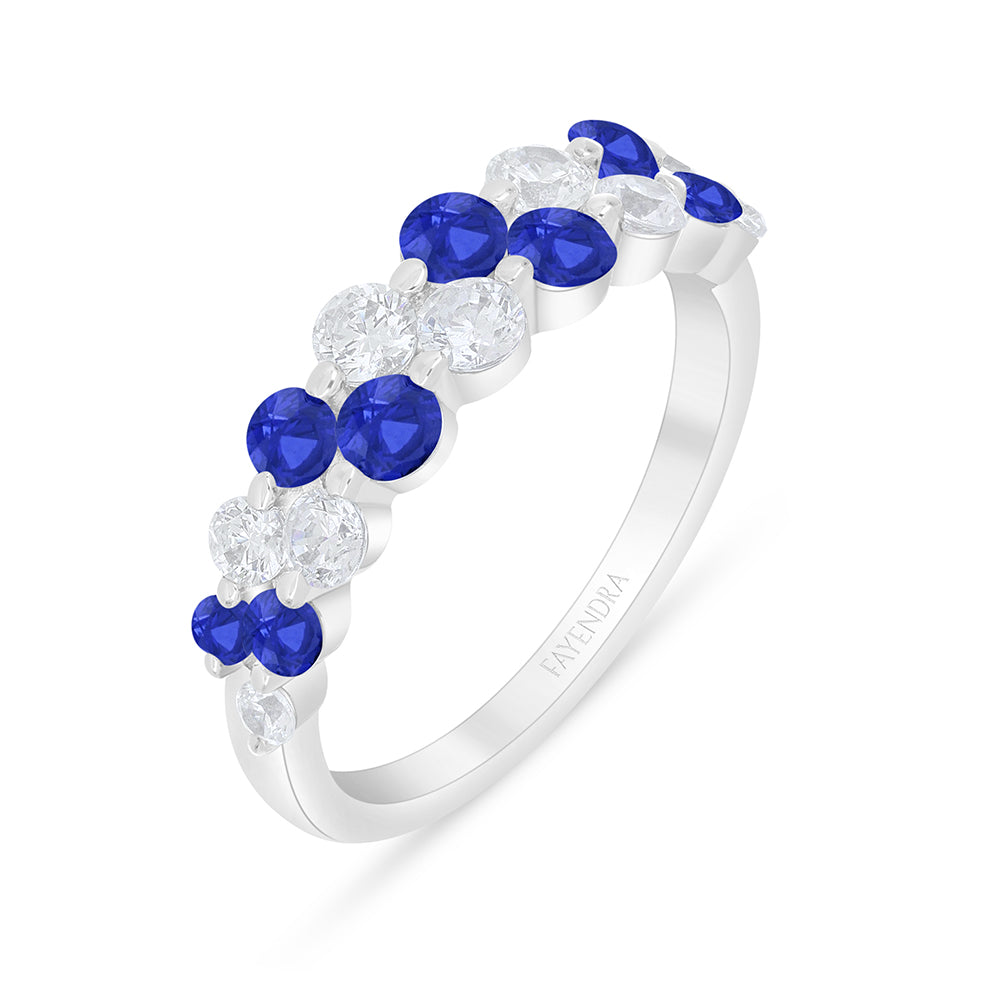 خاتم من الفضة الخالصة عيار 925 مطلي روديوم مرصع زفير كروندوم و فص ابيض