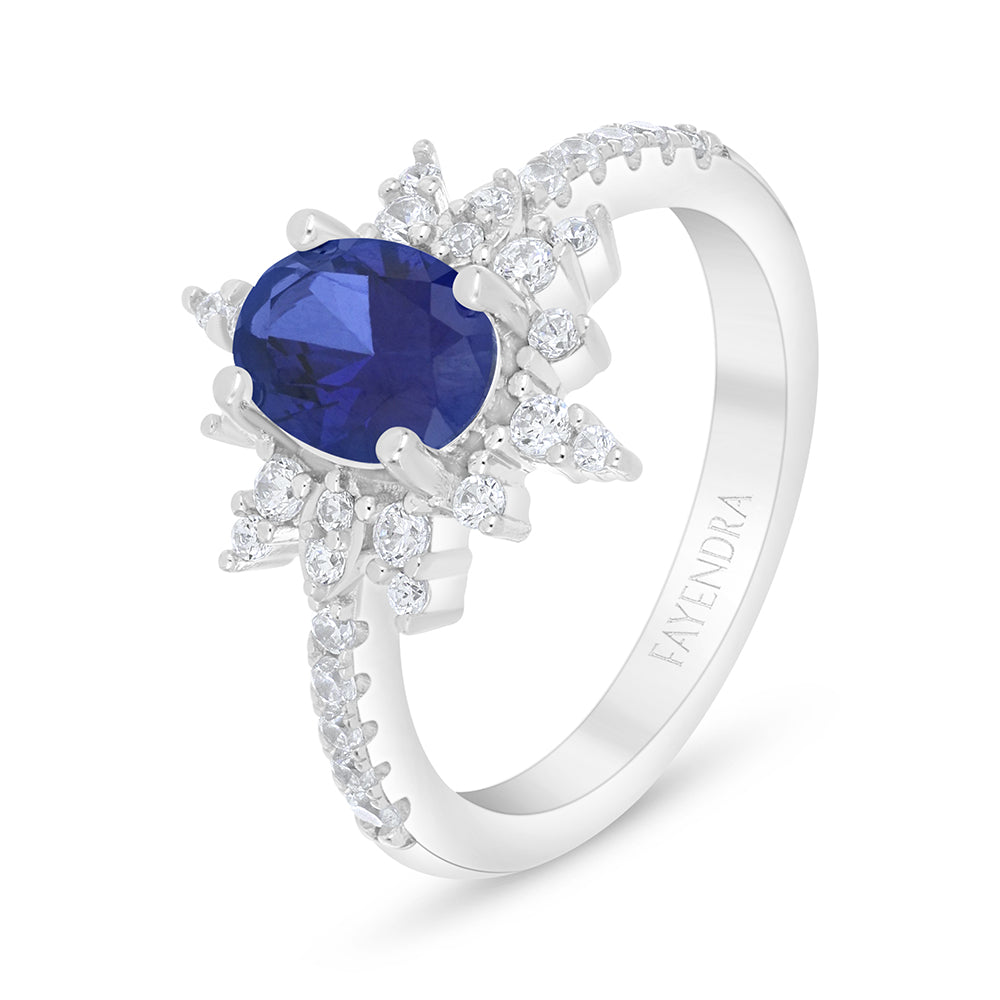 خاتم من الفضة الخالصة عيار 925 مطلي روديوم مرصع زفير كروندوم و فص ابيض