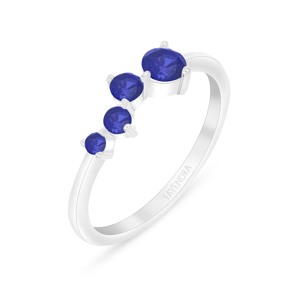 خاتم من الفضة الخالصة عيار 925 مطلي روديوم مرصع زفير كروندوم و فص ابيض