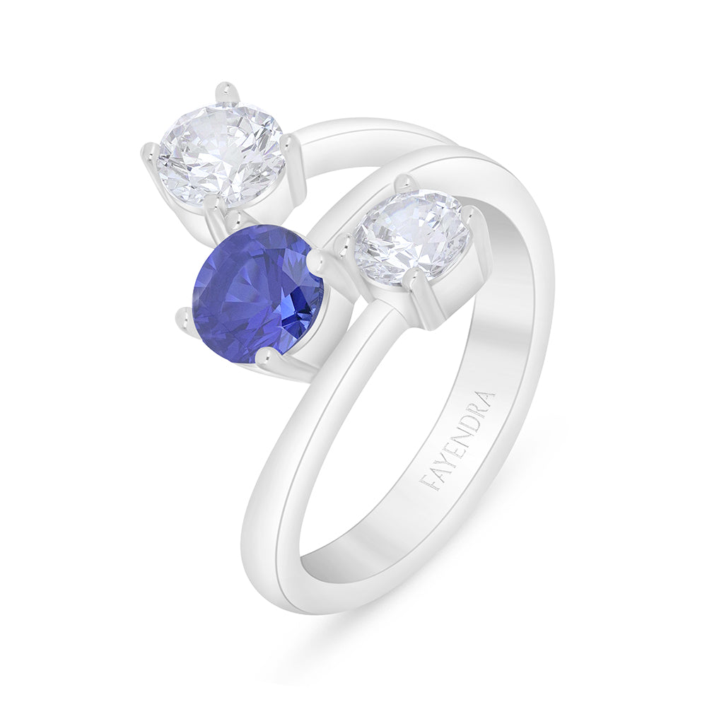 خاتم من الفضة الخالصة عيار 925 مطلي روديوم مرصع زفير كروندوم و فص ابيض