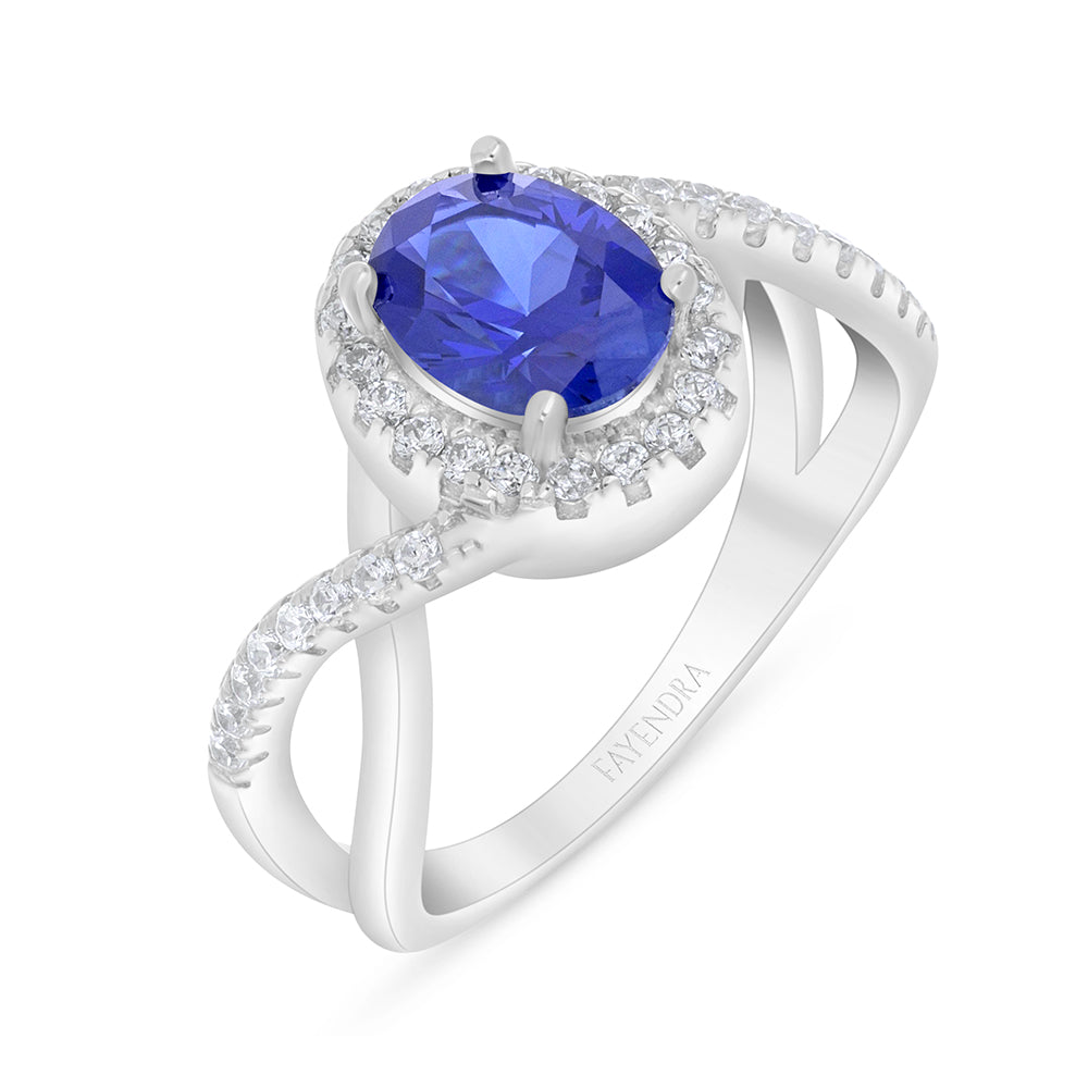 خاتم من الفضة الخالصة عيار 925 مطلي روديوم مرصع زفير كروندوم و فص ابيض