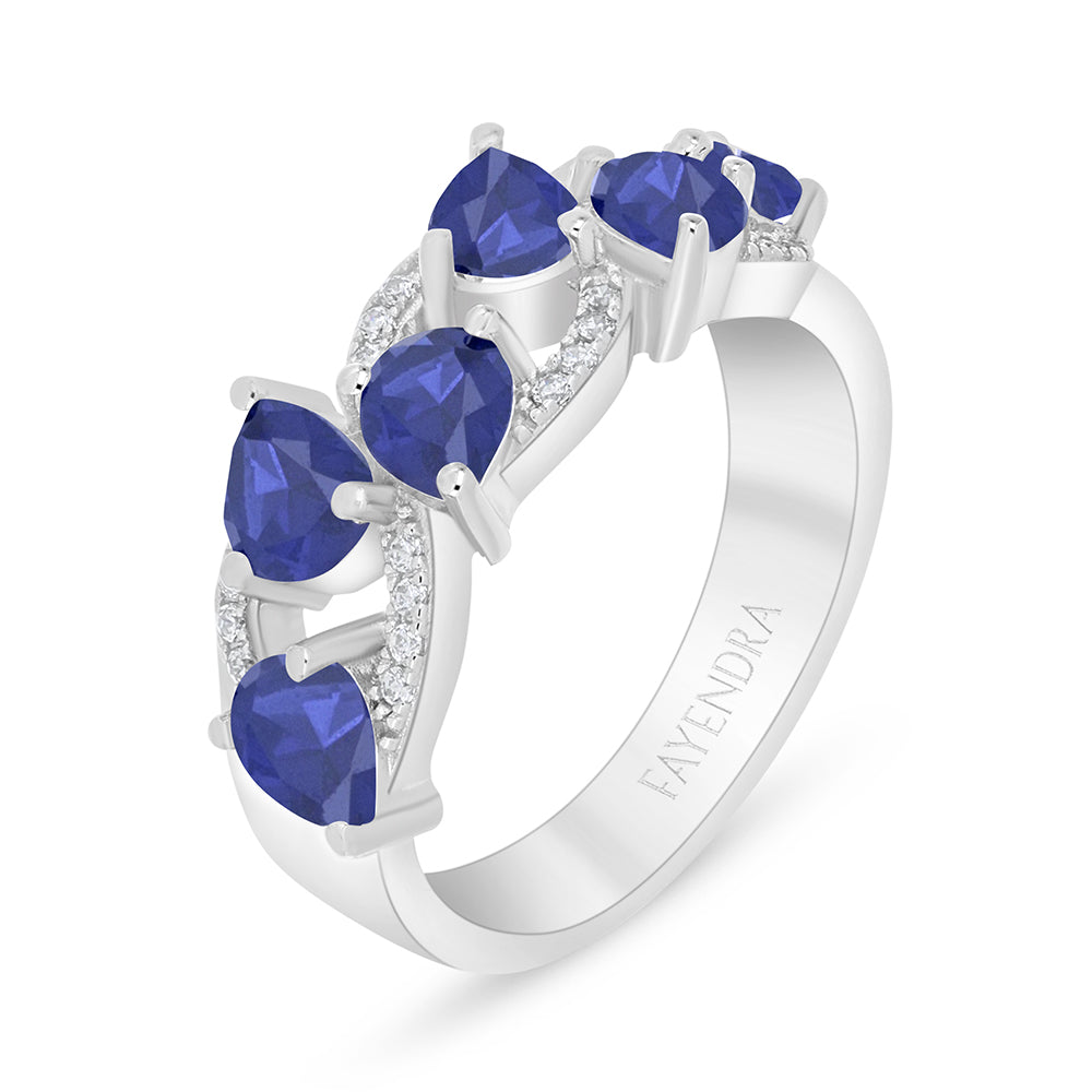 خاتم من الفضة الخالصة عيار 925 مطلي روديوم مرصع زفير كروندوم و فص ابيض