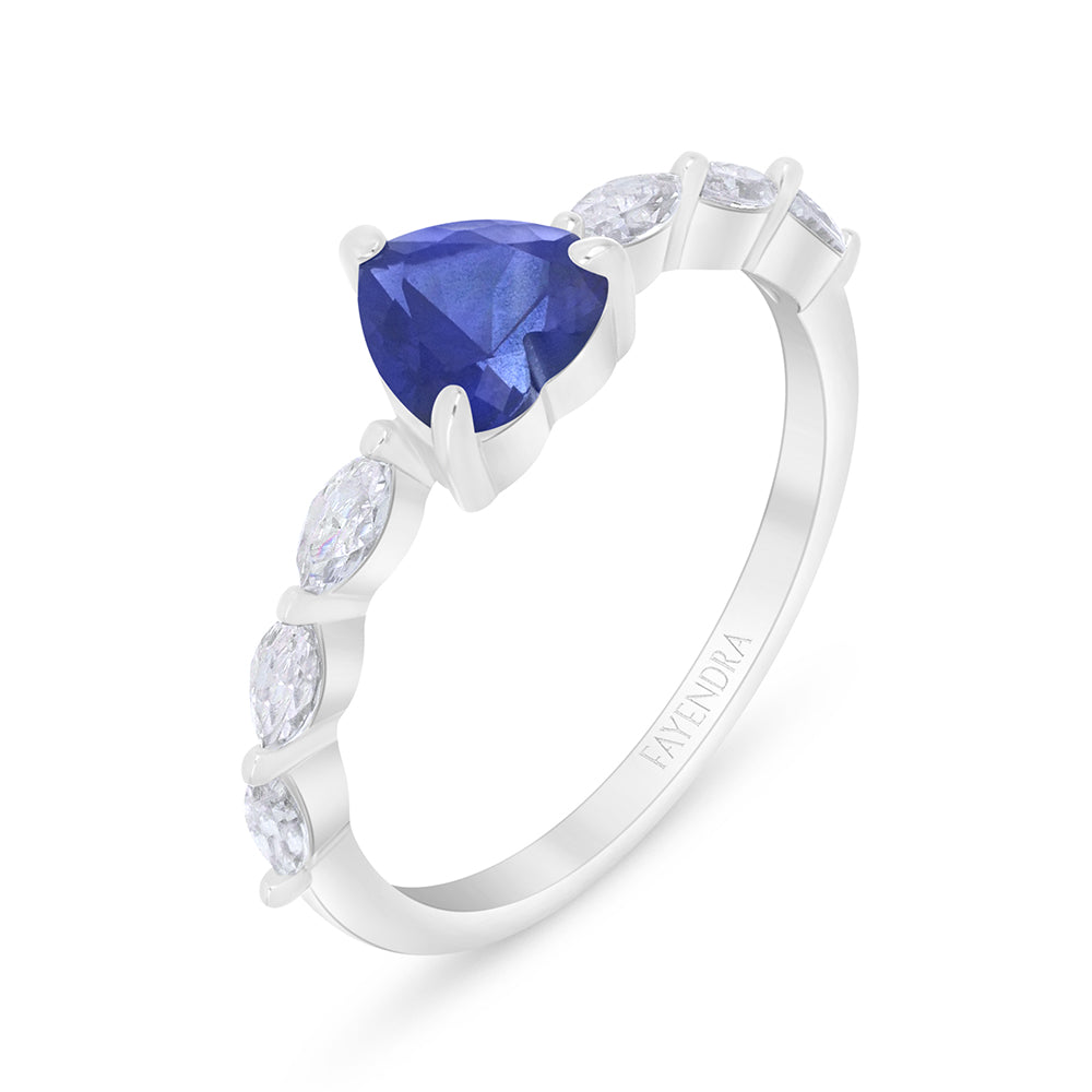 خاتم من الفضة الخالصة عيار 925 مطلي روديوم مرصع زفير كروندوم و فص ابيض