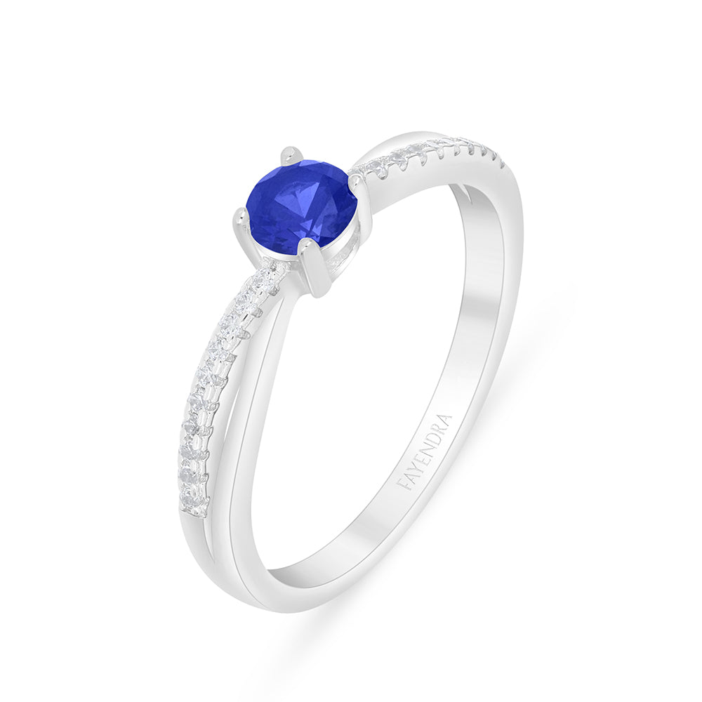 خاتم من الفضة الخالصة عيار 925 مطلي روديوم مرصع زفير كروندوم و فص ابيض