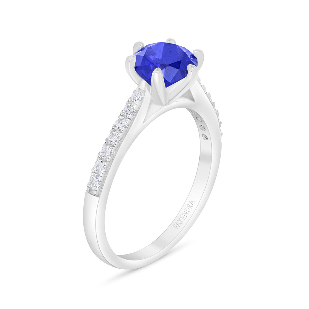 خاتم من الفضة الخالصة عيار 925 مطلي روديوم مرصع زفير كروندوم و فص ابيض