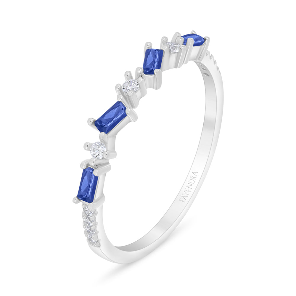 خاتم من الفضة الخالصة عيار 925 مطلي روديوم مرصع زفير كروندوم و فص ابيض