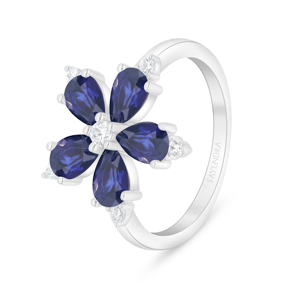 خاتم من الفضة الخالصة عيار 925 مطلي روديوم مرصع زفير كروندوم و فص ابيض