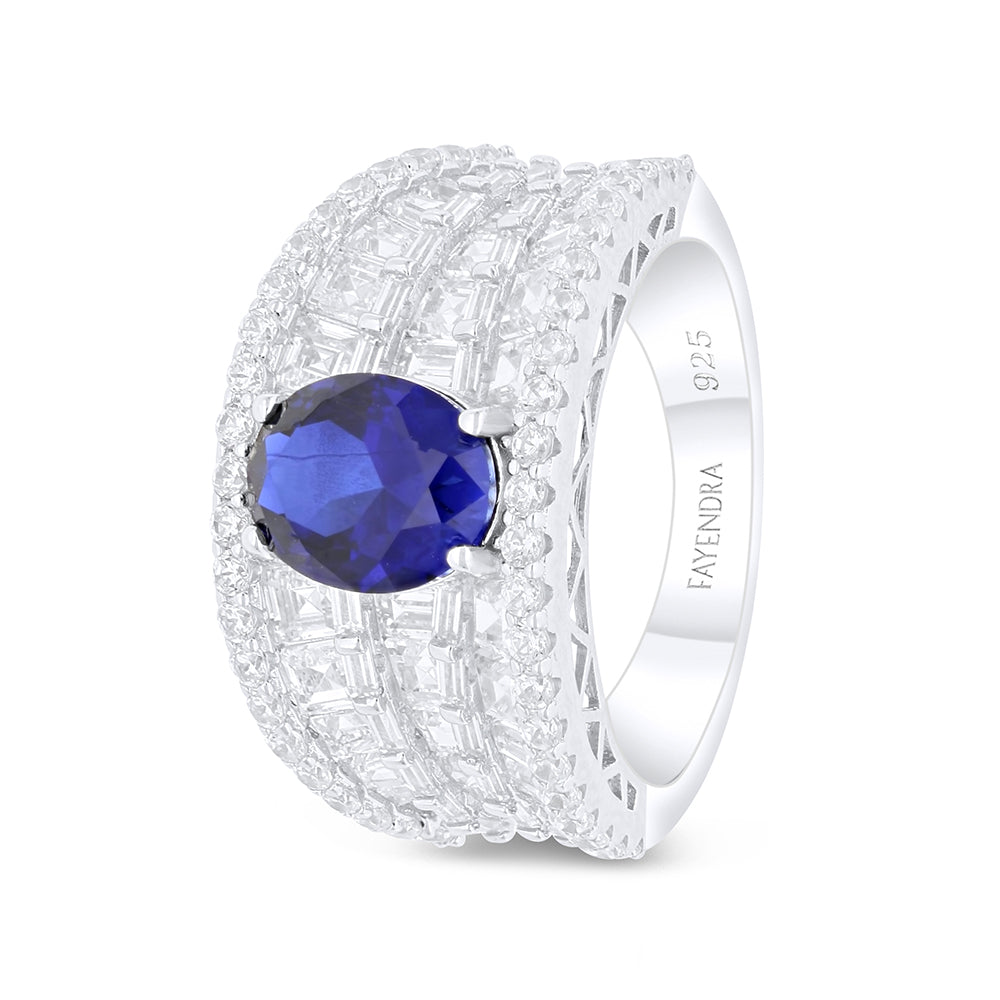 خاتم من الفضة الخالصة عيار 925 مطلي روديوم مرصع زفير كروندوم و فص ابيض